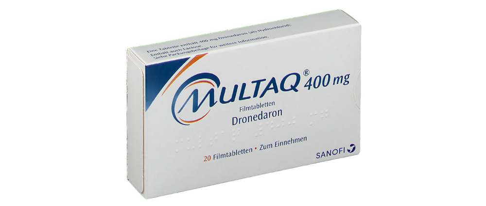 決奈達(dá)隆Dronedarone以"Multaq"品牌銷售,是賽諾菲-安萬特的一種藥物,主要用于心律失常的適應(yīng)癥。它于2009年7月2日獲得FDA批準(zhǔn)。它被推薦作為胺碘酮的替代品,用于治療心臟已恢復(fù)正常節(jié)律或接受藥物治療或電擊治療(即直流電復(fù)律 (DCCV) 以維持正常節(jié)律)的患者的心房顫動(dòng)和心房撲動(dòng)。它是一種III類抗心律失常藥物。在美國,F(xiàn)DA 批準(zhǔn)的標(biāo)簽包括減少住院治療的聲明,但不包括降低死亡率的聲明,因?yàn)榕R床開發(fā)計(jì)劃中沒有證明降低死亡率。該藥物在心力衰竭中的試驗(yàn)已停止,因?yàn)橹衅诜治鲲@示中度至重度充血性心力衰竭患者的心力衰竭死亡人數(shù)可能增加。決奈達(dá)隆的美國標(biāo)簽包括一個(gè)方框警告,指出決奈達(dá)隆禁用于NYHA IV級(jí)心力衰竭患者,NYHA II-III級(jí)心力衰竭患者,最近失代償,需要住院治療或轉(zhuǎn)診至專門的心力衰竭診所,或永久性心房顫動(dòng)。決奈達(dá)隆還與罕見的嚴(yán)重肝損傷病例有關(guān),包括肝衰竭。