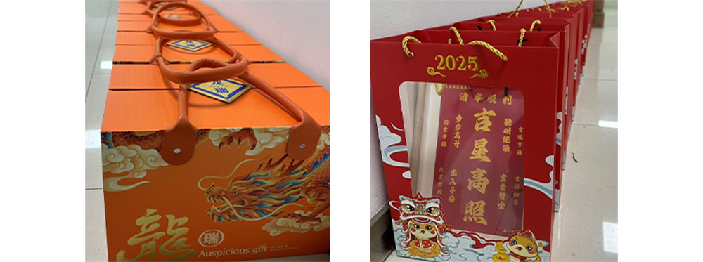 為感謝大家的努力,公司為大家準(zhǔn)備了一份節(jié)日心意。一份新年紅包,愿它為你帶來滿滿的財(cái)運(yùn);一個(gè)精美祝福相框,希望它能給你帶來福氣2025越來越好;一箱橙子,寓意著新的一年心想事 “橙”;還有一箱堅(jiān)果禮包,愿你活力滿滿開啟新程。