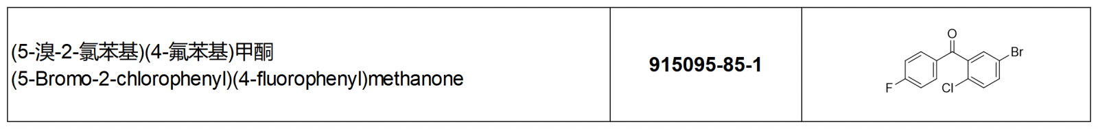 1、中間體化學(xué)信息簡(jiǎn)介:915095-85-1、(5-溴-2-氯苯基)(4-氟苯基)甲酮、(5-Bromo-2-chlorophenyl)(4-fluorophenyl)methanone;