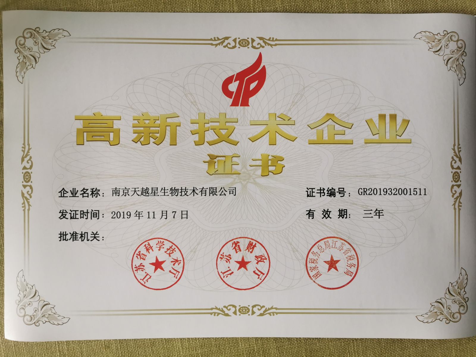 In November 2019, Nanjing Tianyuexing Biotechnology Co., Ltd., a wholely-owned subsidiary of our company, was approved as the "national high-tech enterprise" by the local government.